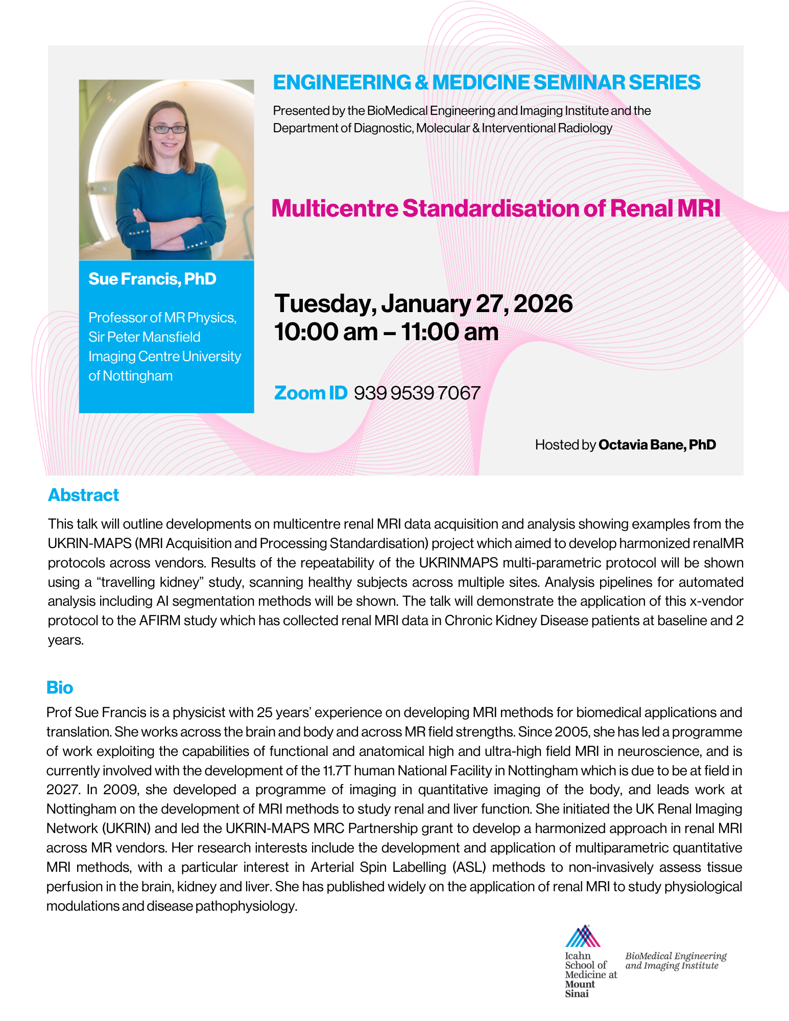 "Multicentre Standardisation of Renal MRI" by Sue Francis, PhD