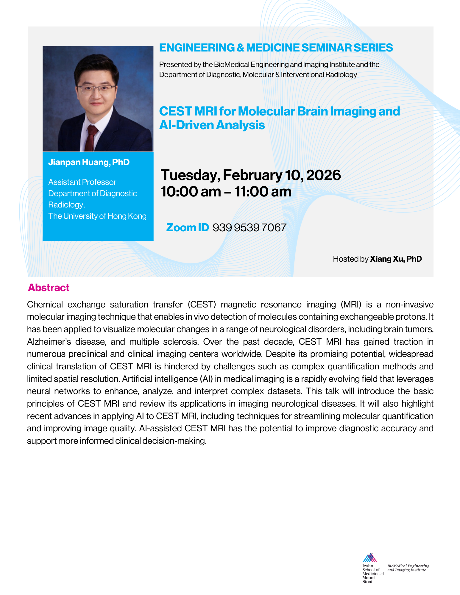 "CEST MRI for Molecular Brain Imaging and AI-Driven Analysis" by Jianpan Huang, PhD